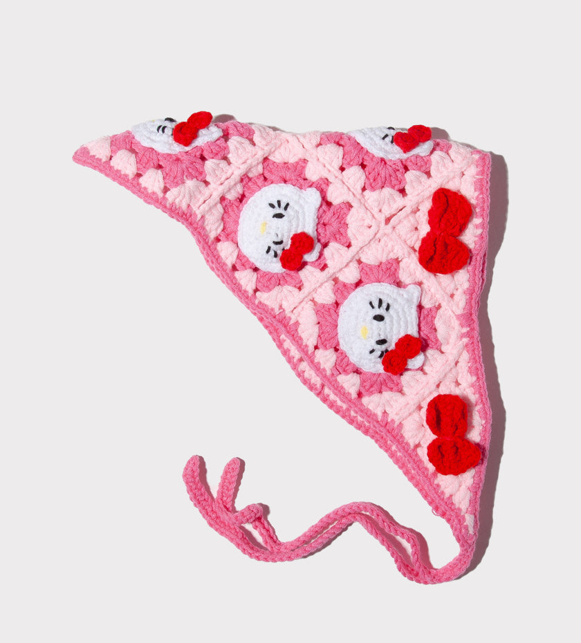 Handmade granny patch hello kitty adjustable crochet Bandana