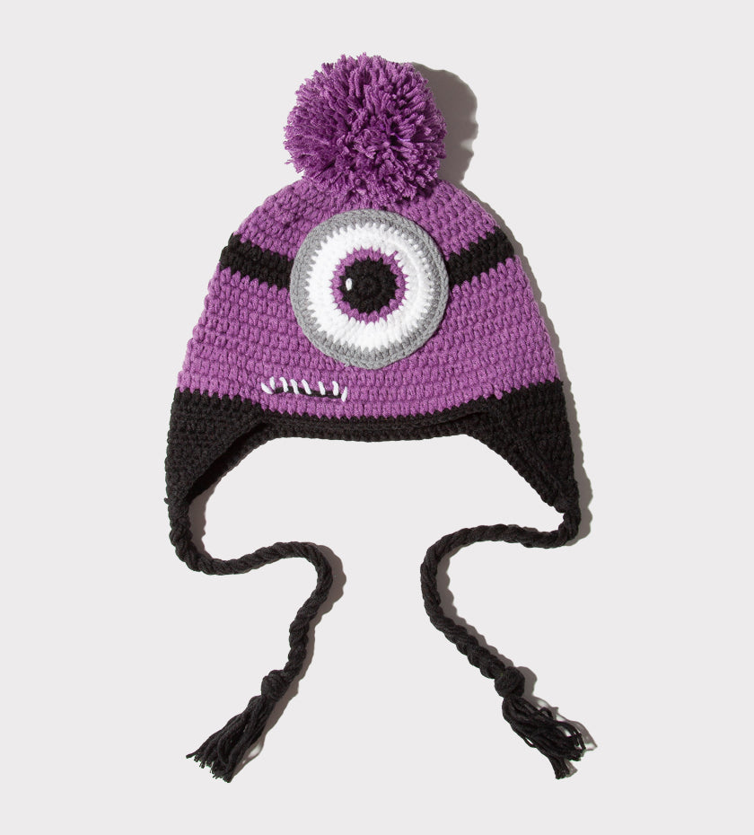 Handmade evil purple one-eyed monster crochet hat